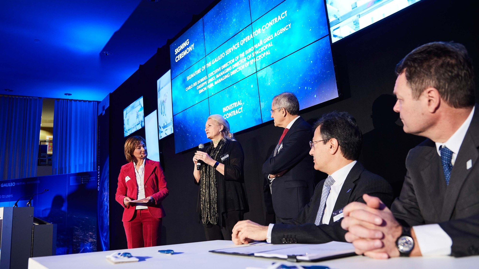 DLR Chair Pascale Ehrenfreund (centre) was pleased about the re-election of Spaceopal. In her speech, she once again pointed out the great importance of Galileo and confirmed the excellent work of the Galileo team at Spaceopal.