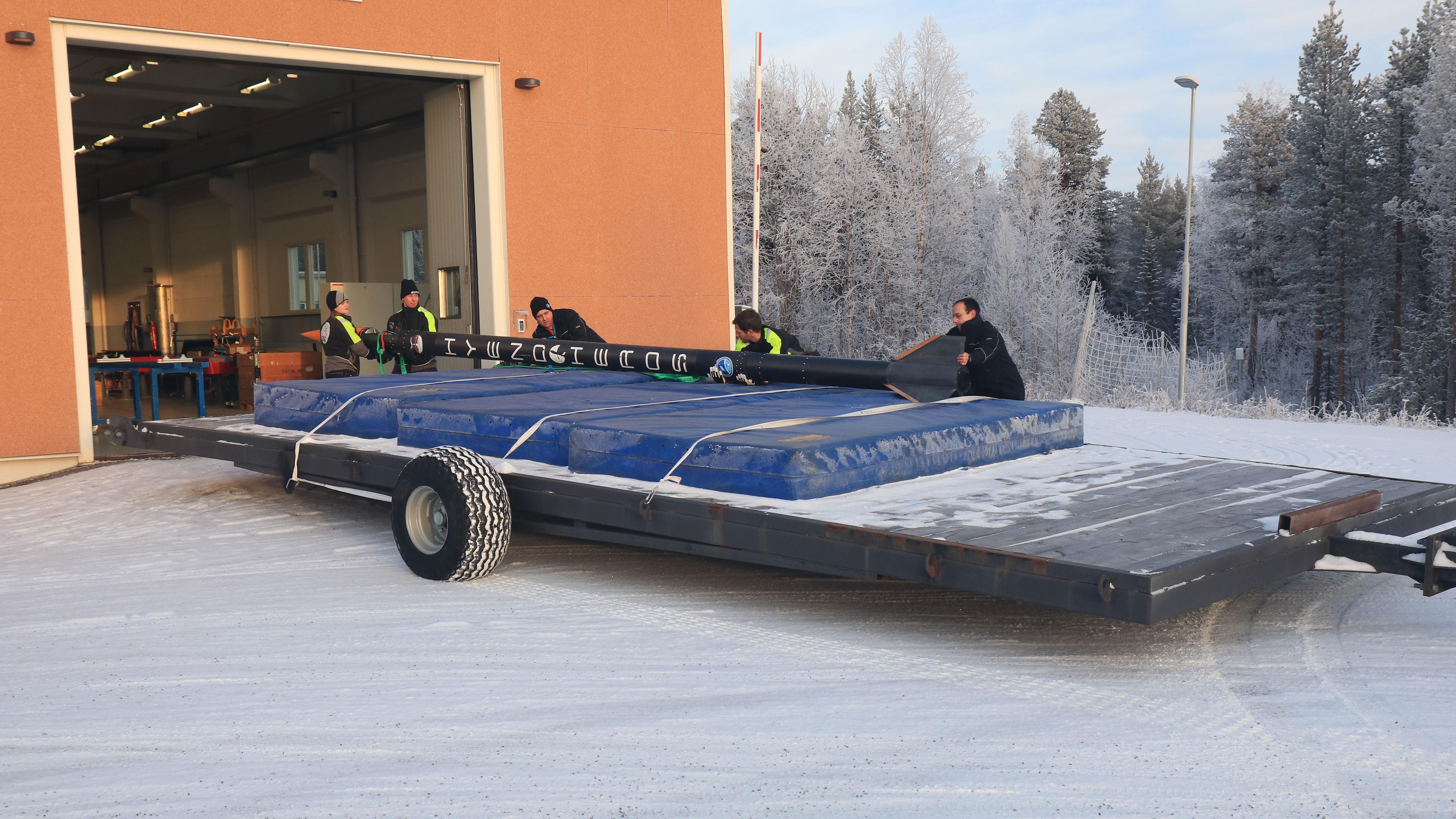 The HyEnD team carried the HEROS3 research rocket into the so-called Skylark Hall after the rocket was returned by the helicopter. The data collected by the rocket will be evaluated here.