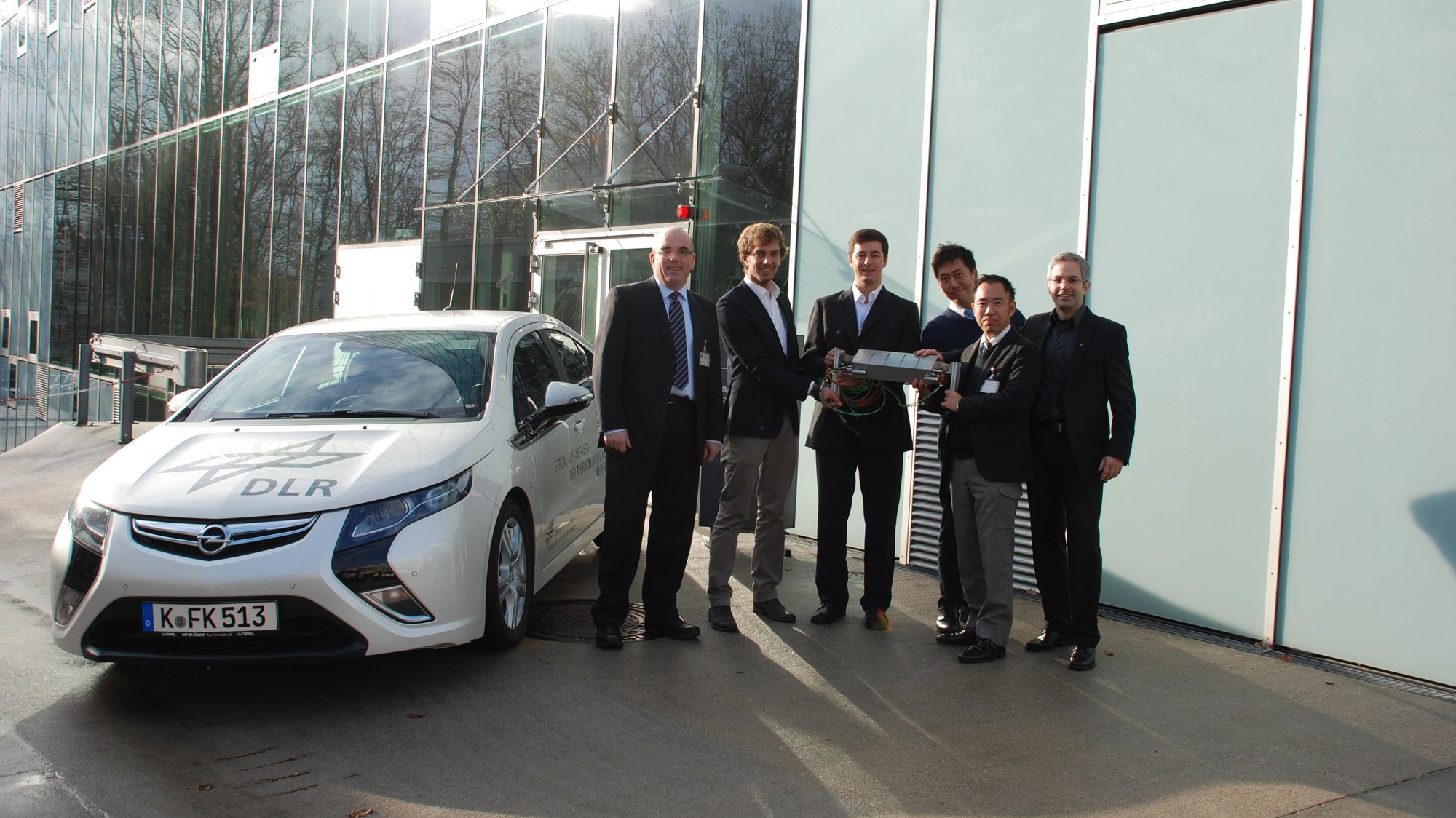 One of the focal points of research at the DLR Institute of Vehicle Concepts is the development of vehicle-compatible thermoelectric generators. In the picture: the research vehicle Opel Ampera and first version of the thermoelectric generator.