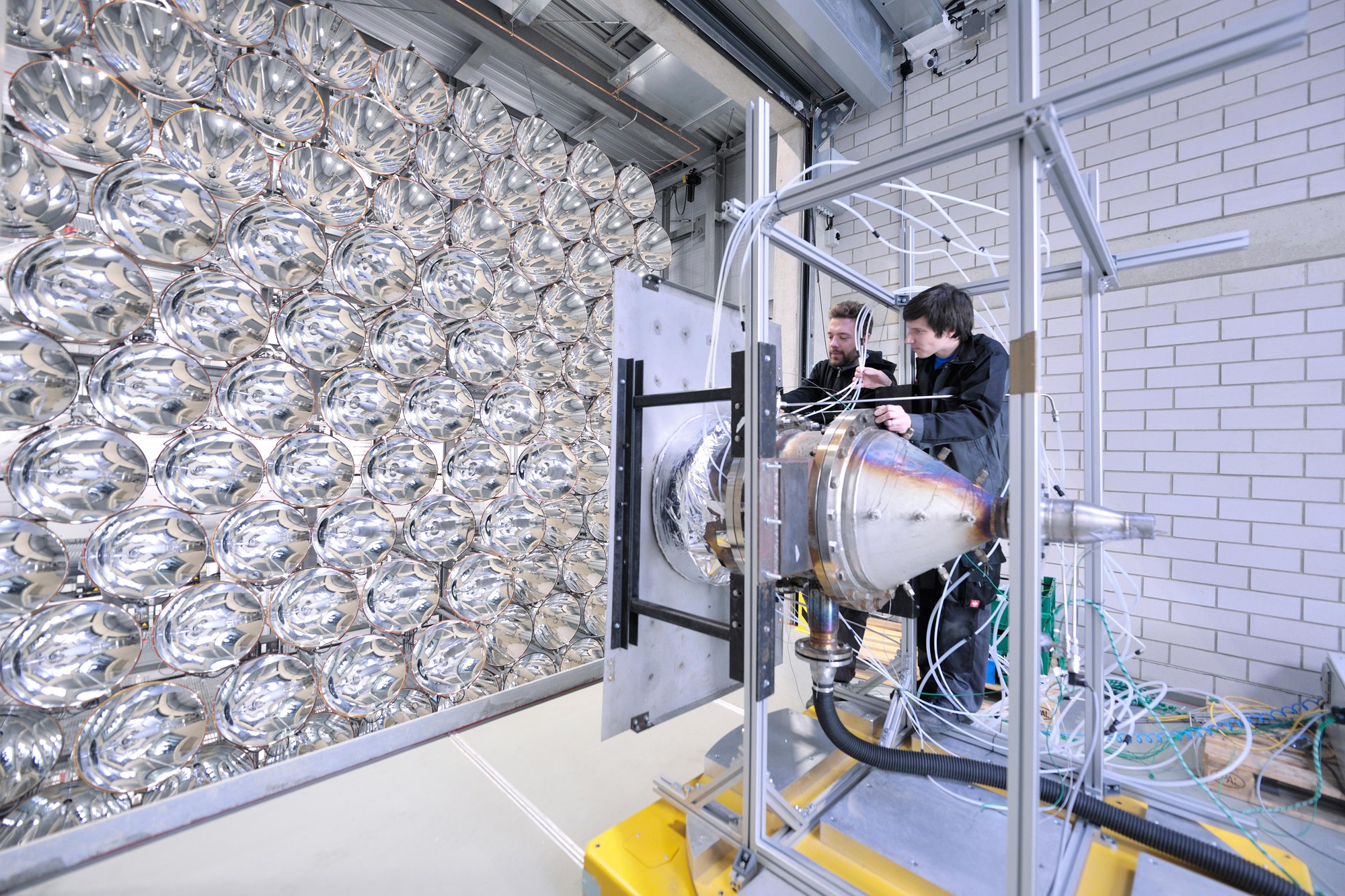 Test can be carried out in three test chambers. Water flows through this reactor, and hydrogen is extracted using the energy of the concentrated light.