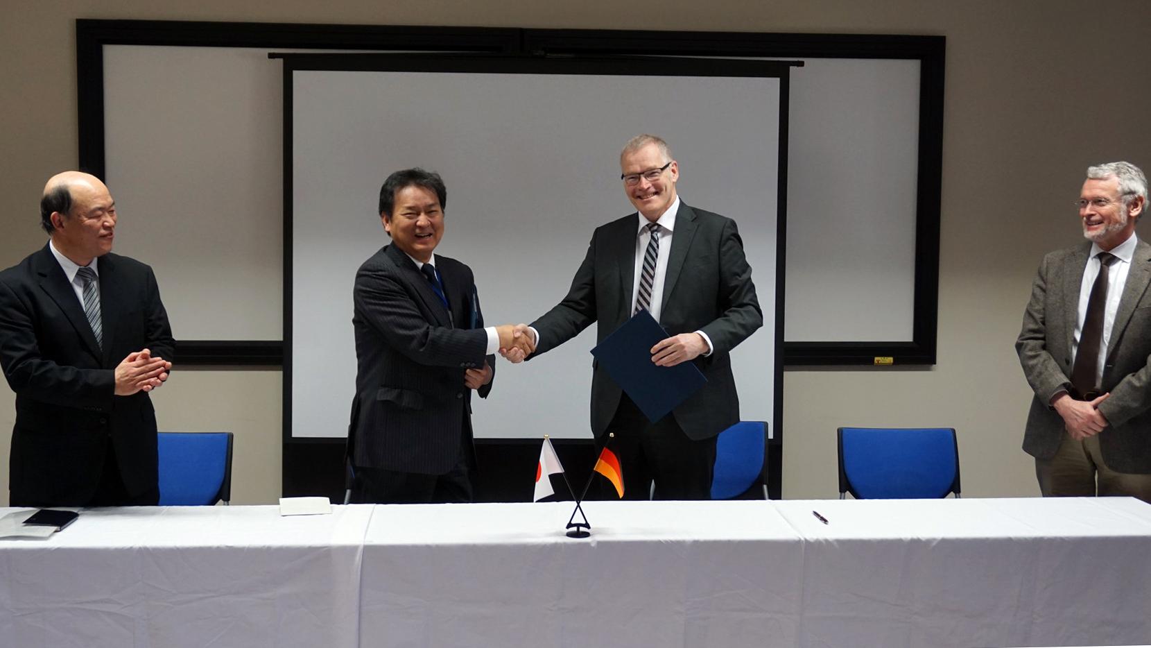 Attending the signing ceremony of the cooperation agreement for air traffic management (from left to right): Shigeru Ozeki and Masashiro Kudo from ENRI; Rolf Henke and Horst Hüners from DLR.