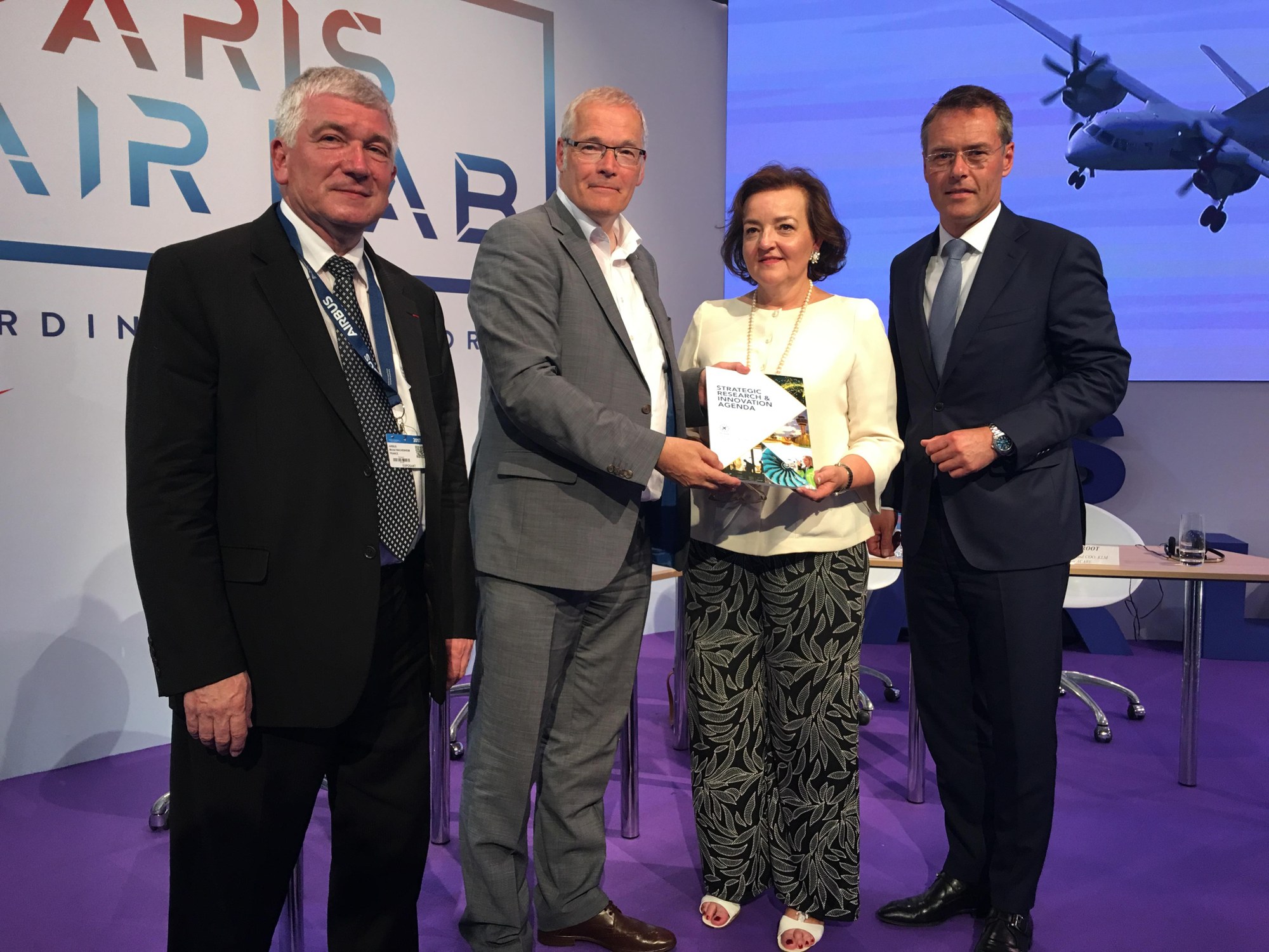 From left to right: Michel Wachenheim, Senior Adviser Public Affairs Airbus, Rolf Henke, ACARE Chairman and DLR Executive Board member responsible for aeronautics research, Clara de la Torre, Director for Transport at the Directorate-General for Research & Innovation at the European Commission, and René de Groot, Managing Director and Chief Operating Officer for Royal Dutch Airlines (KLM).