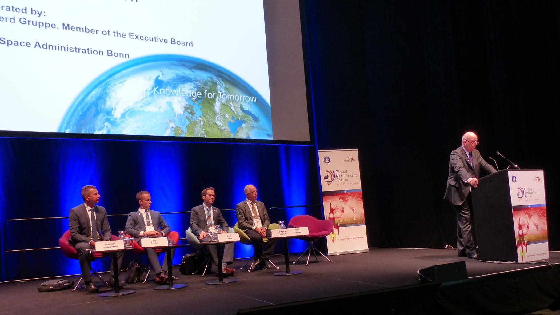 Gerd Gruppe, Member of the DLR Executive Board responsible for the Space Administration, talked with Mattias Motzigemba (TESAT), Jens Große (ZARM), Marc Avila (ZARM) and Stephan Ulamec (DLR) about the current German contribution towards space research and prospects of future missions and projects.