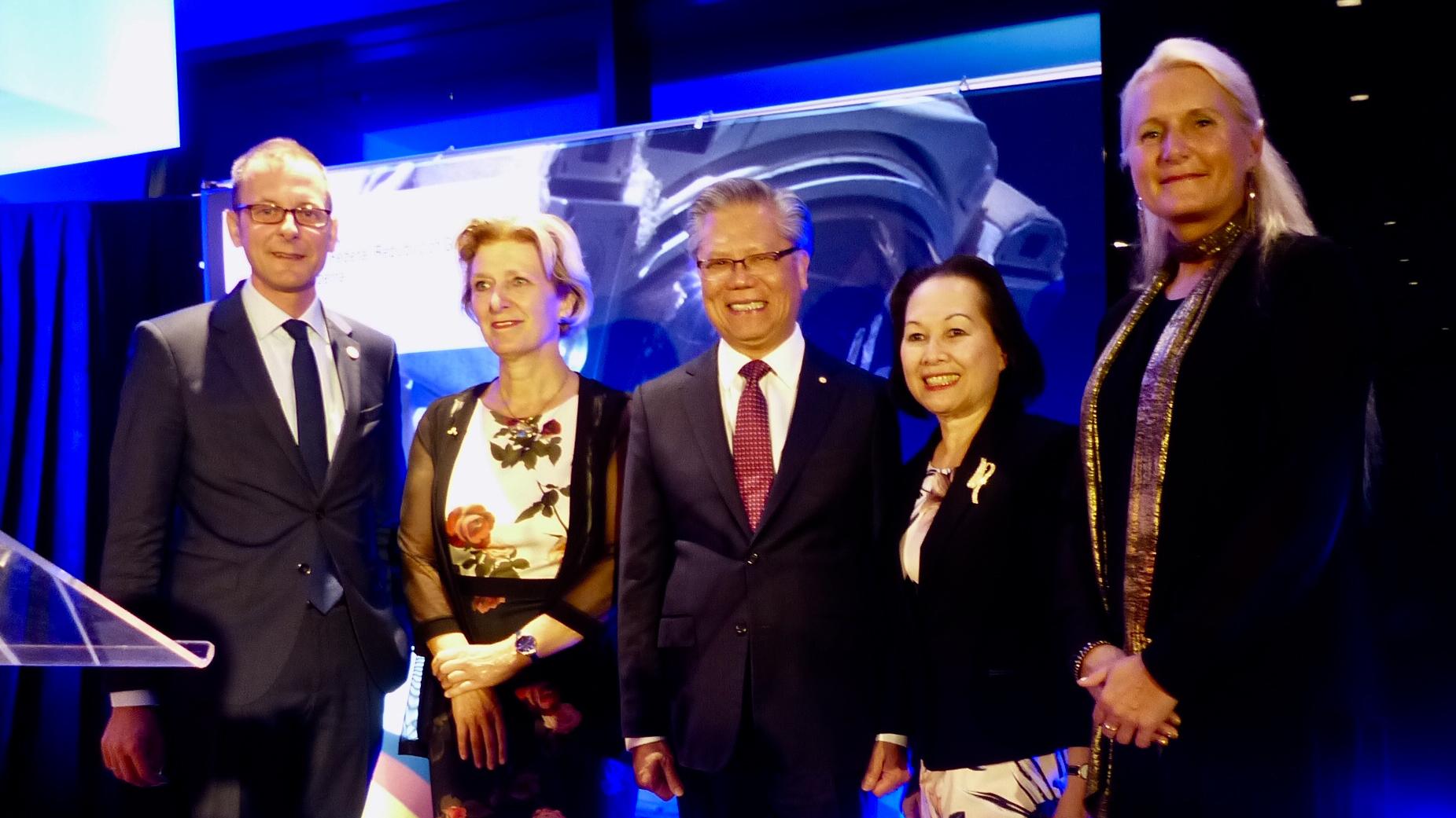 On the occasion of the traditional German Night at this year's IAC, Pascale Ehrenfreund (right) welcomed Senator Martin Günthner from Bremen, German Ambassador to Australia, Anna Prinz, Governor of South Australia Hieu Van Le and his wife Lan Le.