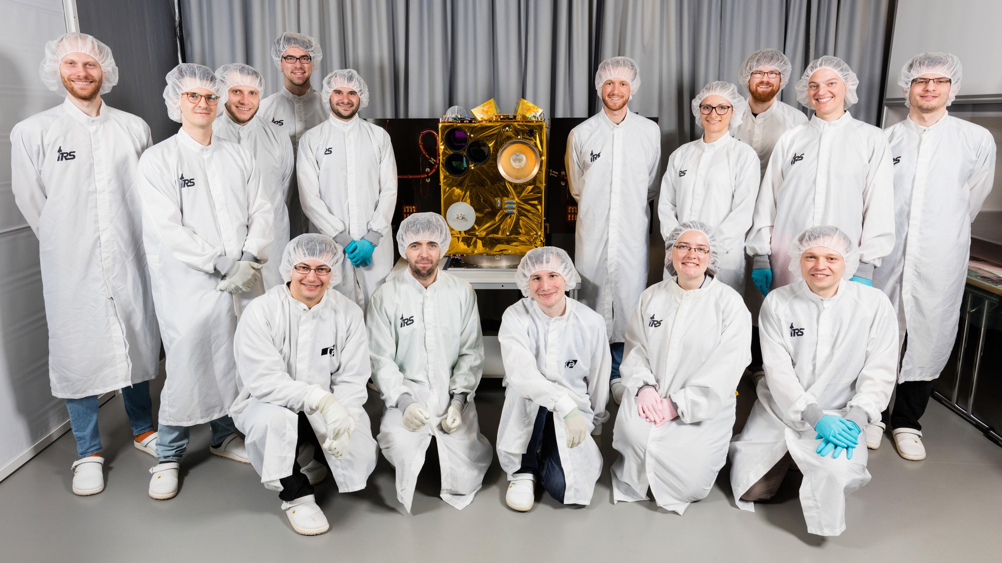 Before the ‘Flying Laptop’ satellite was launched to space, the team from the University of Stuttgart gathered around the research satellites. More than 150 bachelor and masters dissertations and over 20 doctoral theses were written during the development of ‘Flying Laptop’.