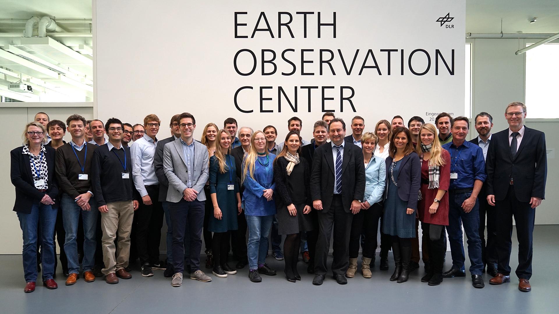 Group picture of the RIESGOS partners during the kickoff meeting at the DLR site in Oberpfaffenhofen on 7 December 2017.