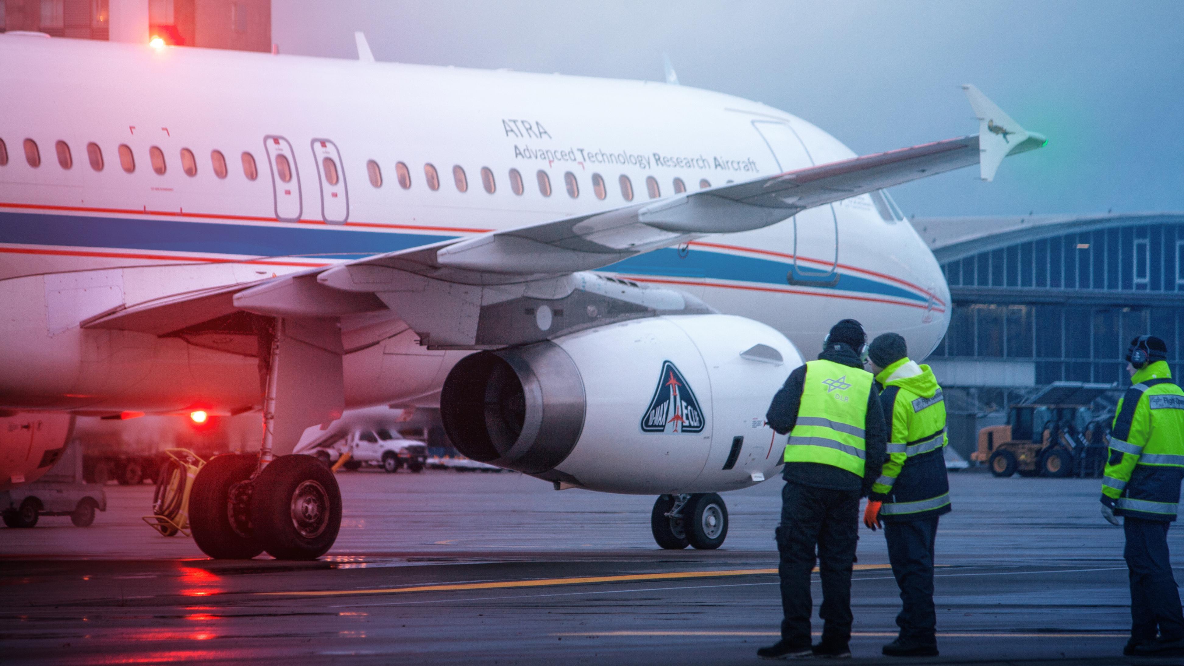 Before the test flights, during which the NASA DC-8 will follow the DLR ATRA in its exhaust plume, researchers measure the composition of the exhaust gases on the ground.