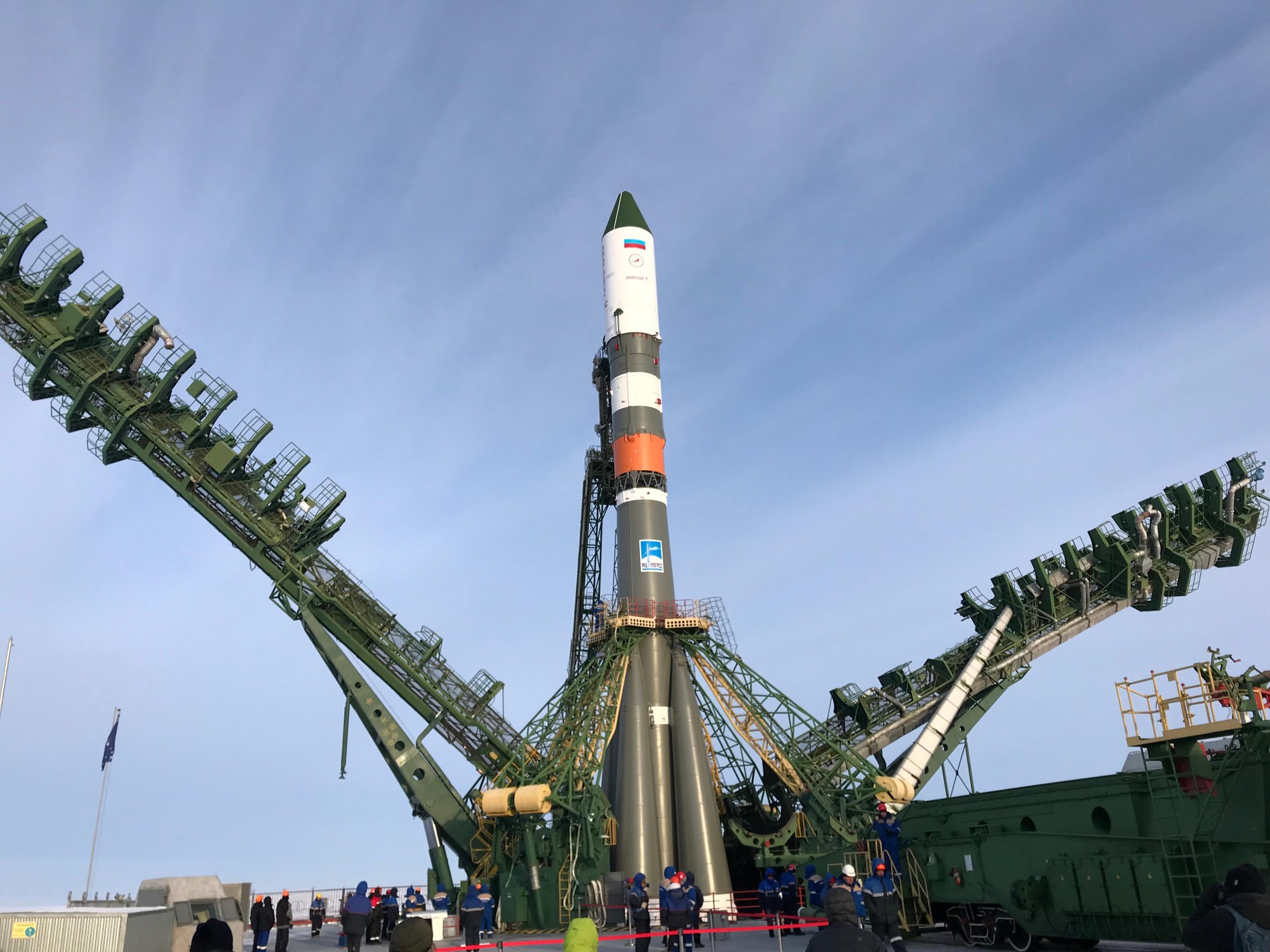 The ICARUS antenna departed from the Russian spaceport in Baikonur to the International Space Station (ISS) as part of the payload of a Soyuz launcher on 13 February 2018. The image shows the launcher two days before lift-off.