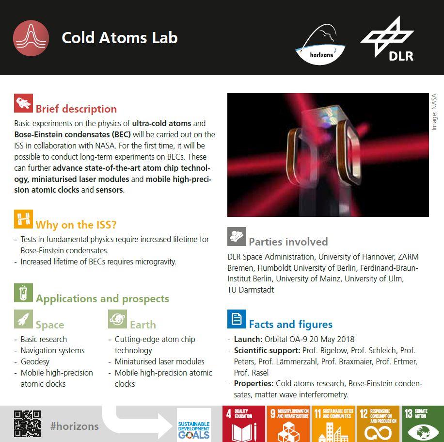 Info card: Experiment Cold Atoms Lab. Credit: DLR.