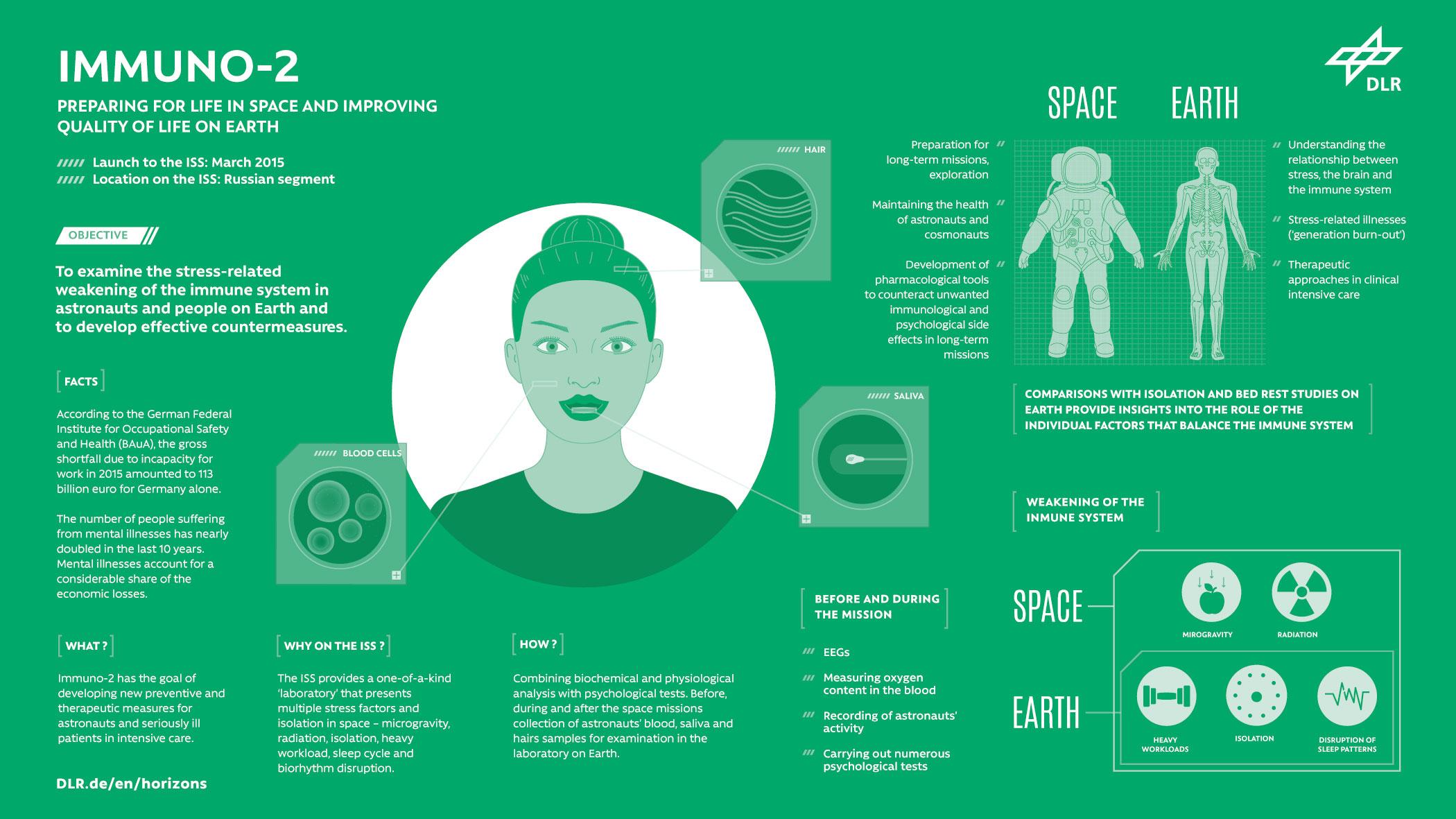 This DLR infographic presents the relevant facts about the horizons experiment Immuno-2 at a glance.