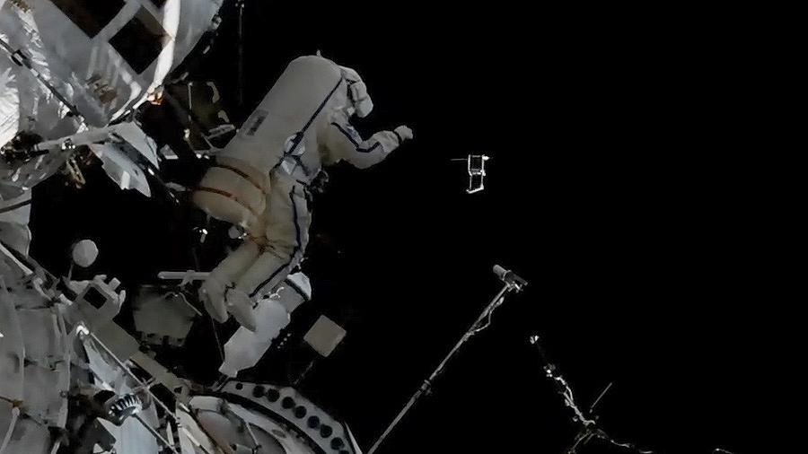 The Russian cosmonaut Sergei Prokopyev during his first spacewalk on 15 August 2018 on the Russian Zvezda module of the ISS. Prokopyev belongs to the current ISS Expedition 56 crew and was launched on 6 June 2018 together with the German ESA astronaut Alexander Gerst to the International Space Station.