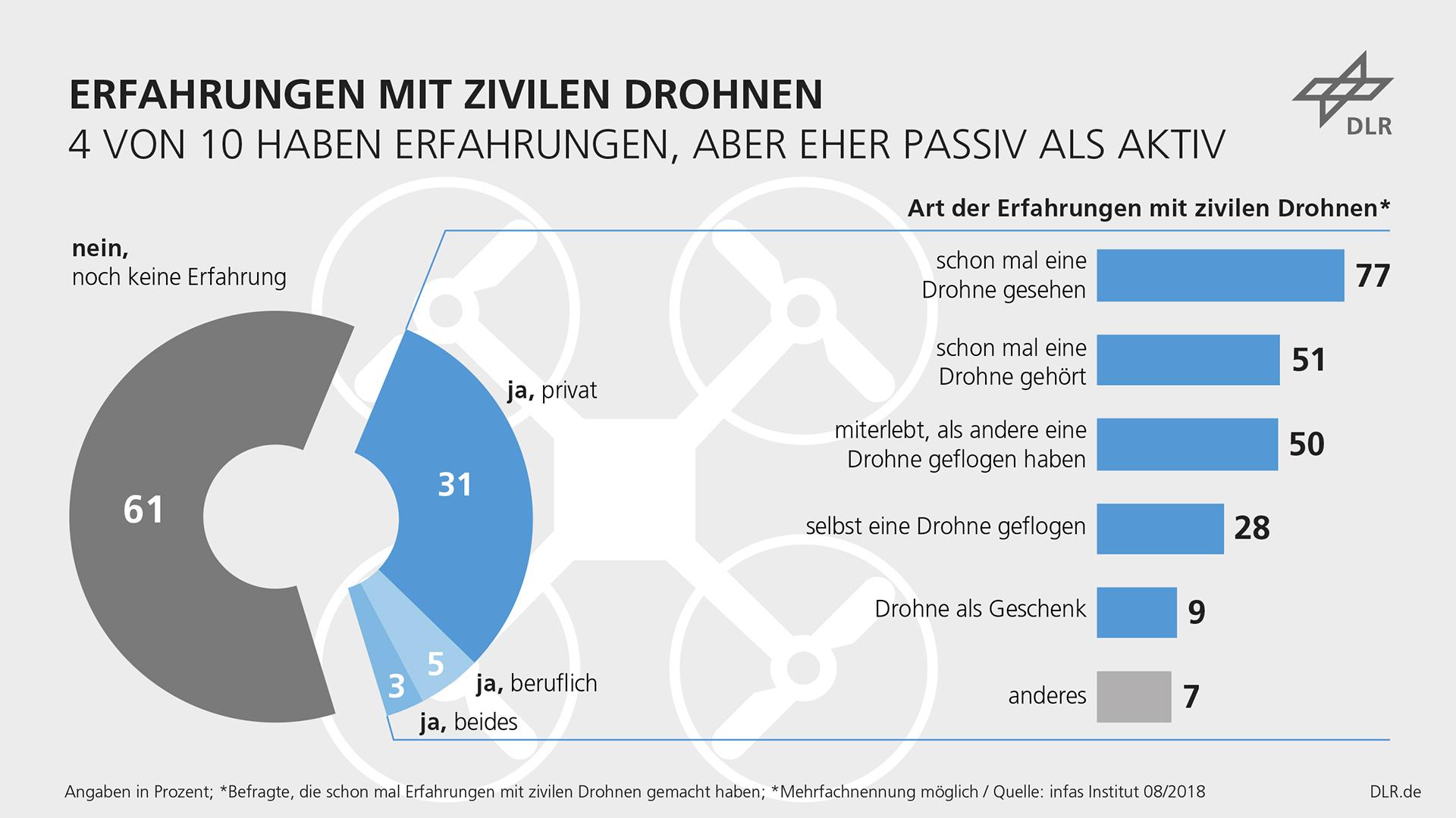 Experience with drones remains rare and is more usually passive, rather than active. Only around 40 percent of those surveyed said that they had ever seen or heard a drone.