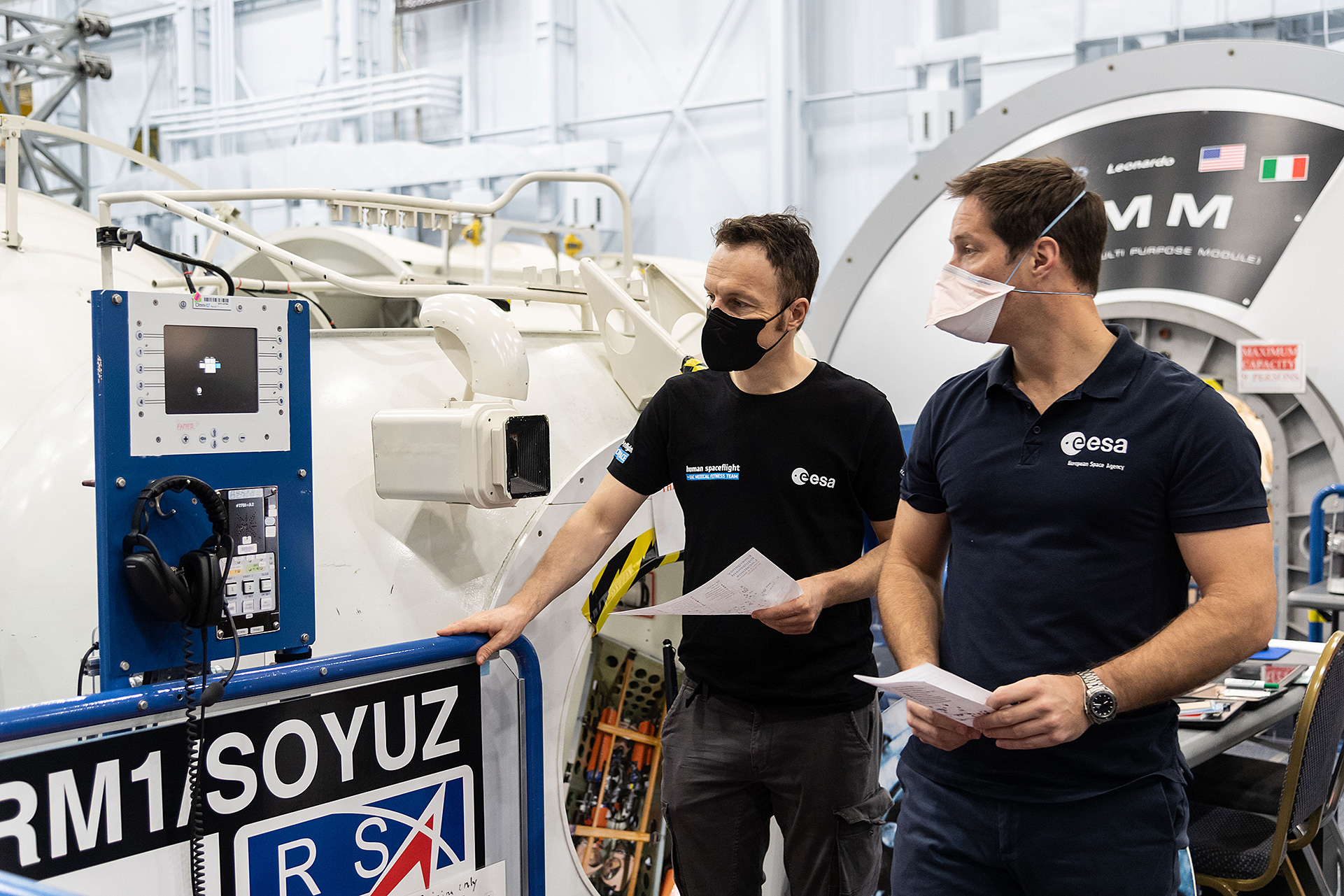 German ESA astronaut Matthias Maurer (left) and his French fellow ESA astronaut Thomas Pesquet underwent a lot of training for their missions. They often trained together, including rehearsing an emergency in space at the NASA Johnson Space Center in Houston.