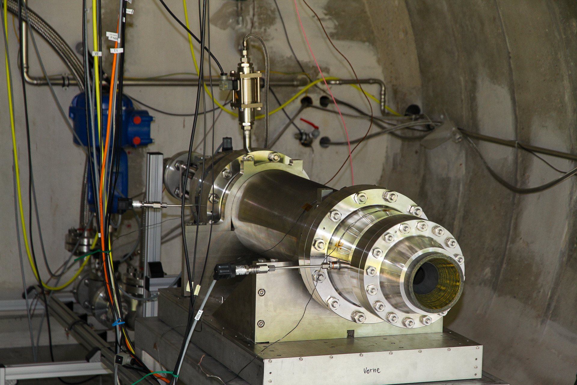 The VISERION engine on the 'Viererblock' test stand at the Institute of Aerodynamics and Flow Technology at DLR Trauen. VISERION is a laboratory engine whose inner workings can also be used in a lightweight version suitable for flight virtually unaltered.
