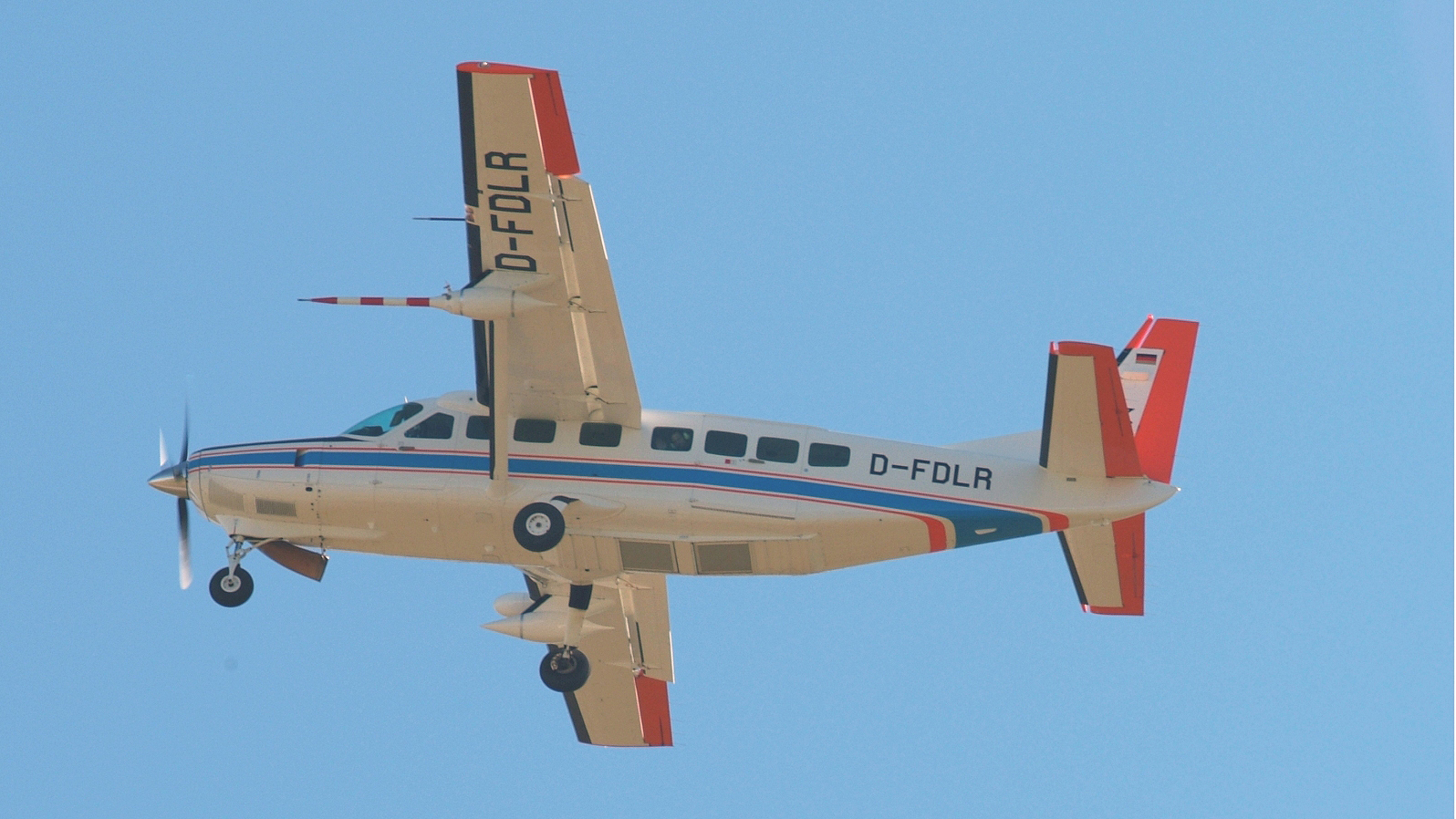 The Cessna C208B Grand Caravan (registration D-FDLR) was converted into a 'flying auditorium' at the Oberpfaffenhofen flight facility.
