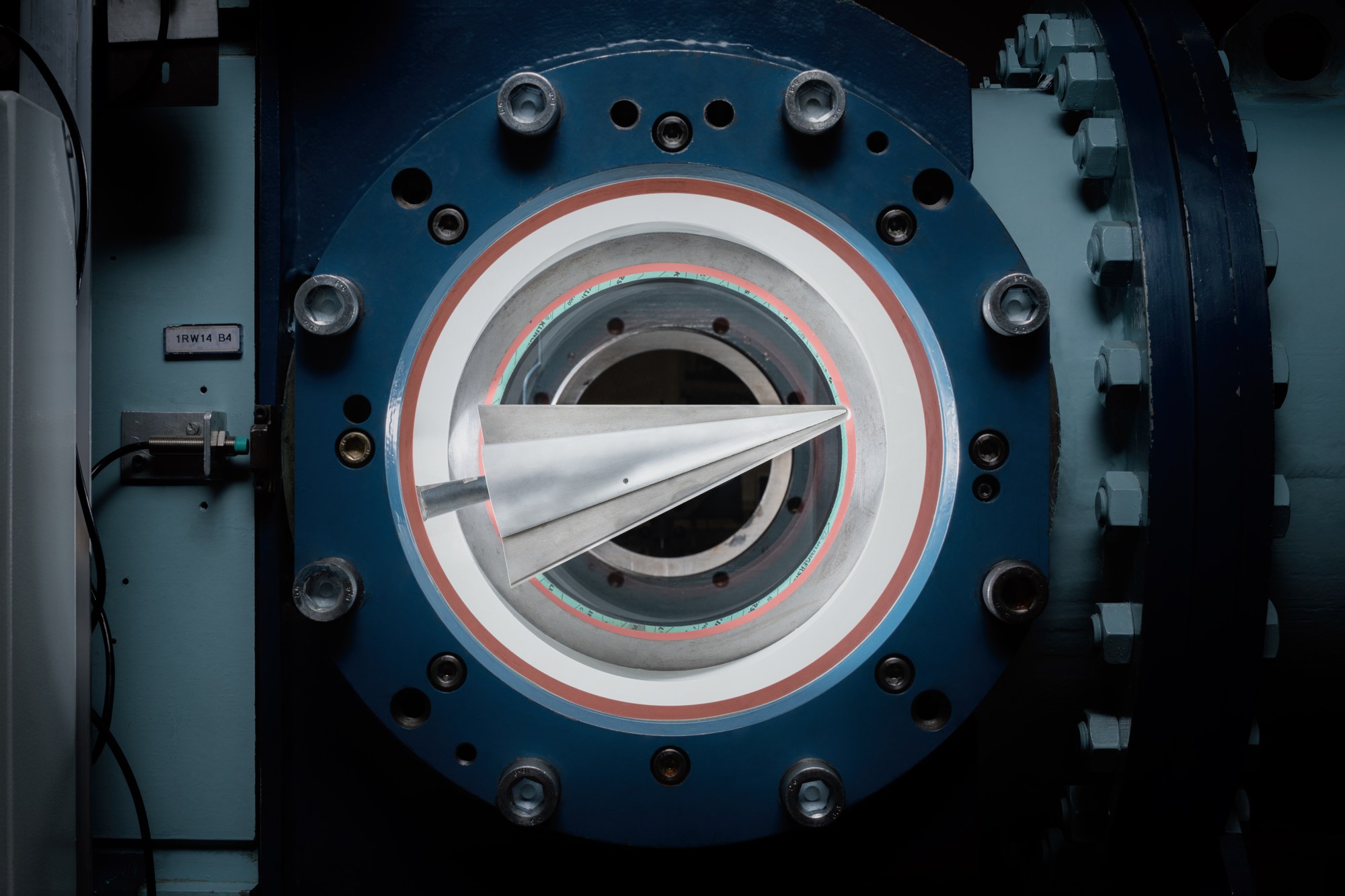 The optical accessibility of the RWG is realised by two concentrically arranged windows, each with a diameter of 320 mm, which are mounted on both sides of the measuring section. Optionally, these can be replaced by a special germanium window of the same size, which enables quantitative heat flux density measurements on model surfaces using infrared thermography.