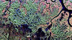 The colours in the image represent different types of backscatter of the radar signal.