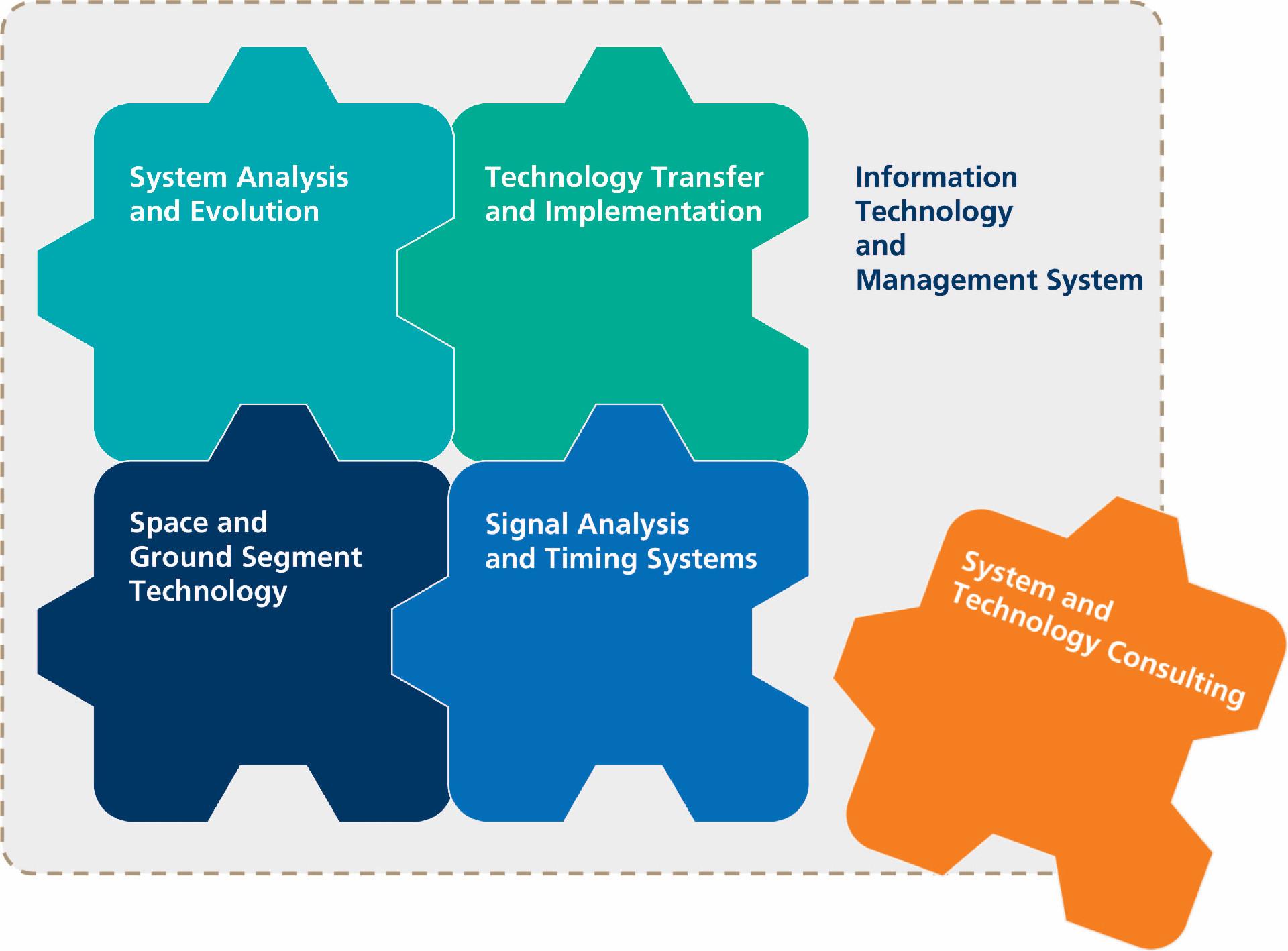 The structure of the organisation mirrors the underlying thematic fields necessary for the further development of the Galileo system. Of particular importance is the close internal networking between corresponding departments.