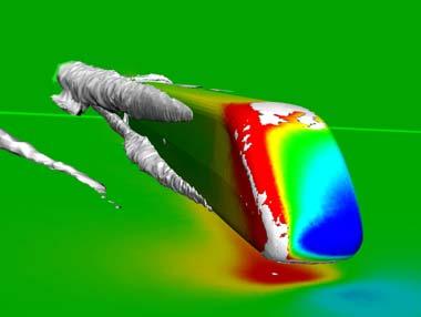 Numerical simulation of side wind effects on a high-speed train. The DLR Institute of Aerodynamics and Flow Technology in Göttingen is equipped with special wind tunnels with the latest modern optical measurement equipment. For the first time, air flow and density field surveys for high-speed train models are being tracked in the Cryogenic Wind Tunnel in Cologne, and in the High-Pressure Wind Tunnel, in Göttingen (both are part of the German-Dutch Wind Tunnels programme), providing a realistic simulation of the Reynolds number, a physical quantity used to characterise the flow of air around a moving object.