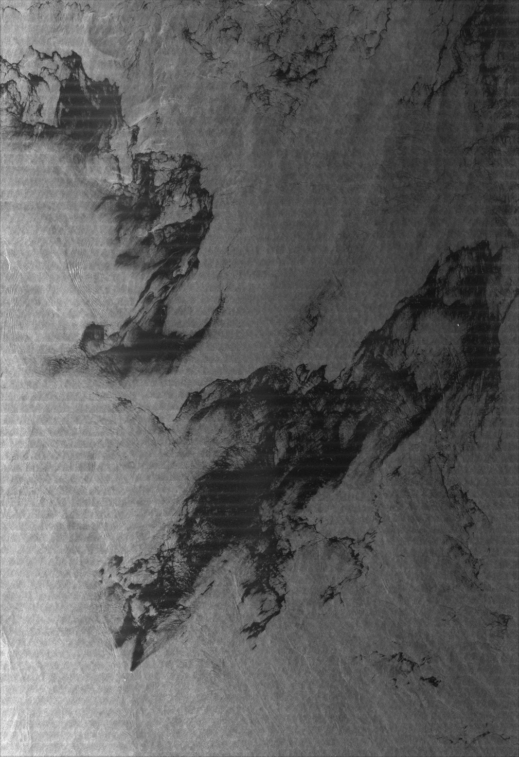 The image was acquired by the German TerraSAR-X radar satellite on 21 September 2009 while operating in ScanSAR mode and has a resolution of around 18 metres. It shows the Montara offshore oil platform in the Timor Sea, northeast of Australia, with an oil slick of around 2000 square kilometres spreading out from it, revealed as a dark area. The image covers an area of 100 by 150 kilometres.