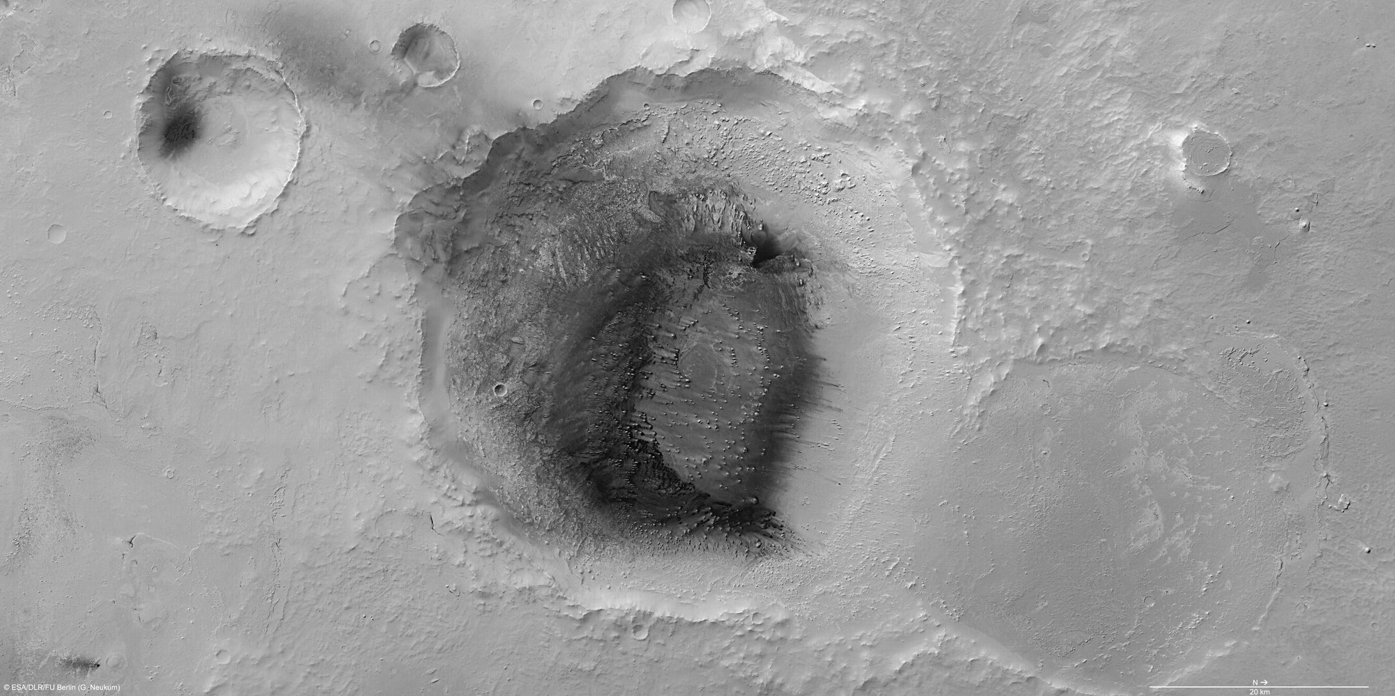 The High-Resolution Stereo Camera (HRSC) on board ESA’s Mars Express orbiter acquired this image. It was obtained on 1 September 2005, during orbit 2097, and has a resolution of approximately 13 metres per pixel. The image was derived from the HRSC nadir channel, which provides the highest detail of all the channels.