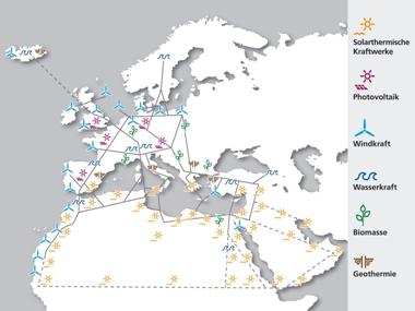 North Africa and the Middle East are rich in solar energy. The clean electricity generated in North Africa could be transported to Europe via a distribution network. In addition, desalination plants operated with energy from solar-thermal power plants could produce drinking water for the desert states.
