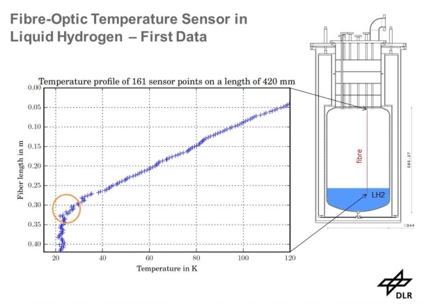 Glasfasersensorik ermöglicht die ‚verteilte‘ Erfassung von Temperaturfeldern. Mit einer Messfaser kann eine Vielzahl von Messpunkten realisiert werden, wie das Beispiel der Temperaturverteilung in einem mit Wasserstoff gefüllten Kryo-Behälter zeigt. Dabei kommt Sensorik basierend auf Rayleigh-Backscatter sowie Fiber-Bragg-Gratings zum Einsatz.