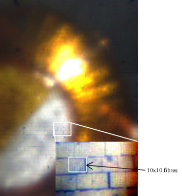 Optische Glasfaserbündel erlauben Einblicke in Experimenttanks ohne Zugangsfenster oder Kameras im Behälter. Das Bild wird durch ca. 105 gebündelte optische Fasern übertragen, wobei das Bündel und sein Sichtfeld vor dem Abkühlen flexible ausgerichtet werden können.
