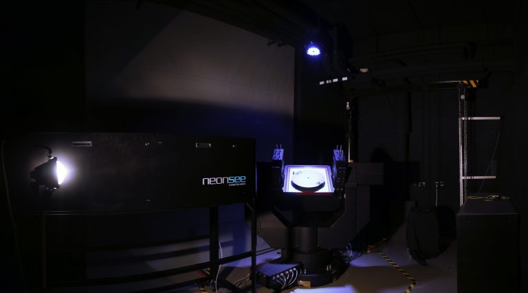 The rotation table in combination with the real time system, provided by the company dSPACE, is used for the stimulation of the different sensors. Through this combination, it is possible to move the sensor using programmed positions, rotation rates or trajectories in real time and collect the synchronized data of the rotation table and sensor. This setup can be used to characterize gyroscopes, accelerometers or IMUs as well as provide measurements for Hardware-in-the-Loop Tests. A set of large doors can be opened to allow an unobstructed view of the night sky for the verification of star trackers.