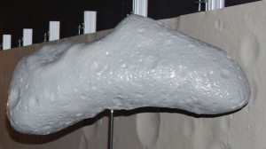 In addition to a lunar scenario, the TRON laboratory offers further test objects, e.g. a model of the asteroid 433 Eros on a scale of 1:34000. The asteroid can be rotated around its vertical axis.