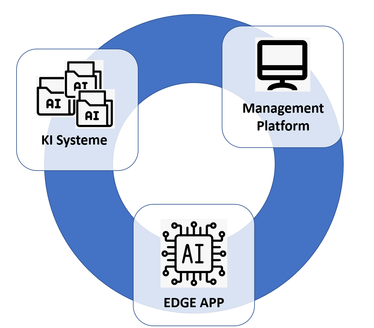 The overall system for railway infrastructure monitoring consists of trained AI systems and an implementation and extension of edge computing in mobile networks. A central management platform controls which AI system is used in which edge application.