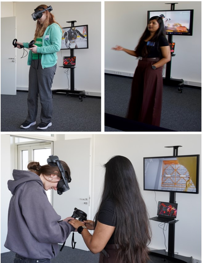 Next, they immersed themselves in our training simulation for robots with a virtual reality headset. There, they interacted directly with the virtual robot, gave commands, or simply explored the world. The focus was mainly on future production facilities where humans can safely collaborate with robots.