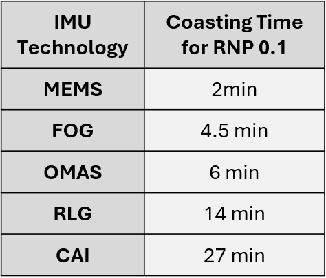 Although better inertial sensor can enhance robustness, resilient and increase the GNSS-independent coasting times, because of the necessity to compensate for Earth effects (such as gravity) to translate specific forces to linear accelerations, the standalone capability of a sole quantum inertial navigation system (strapdown) is still bounded as seen from the figure below.