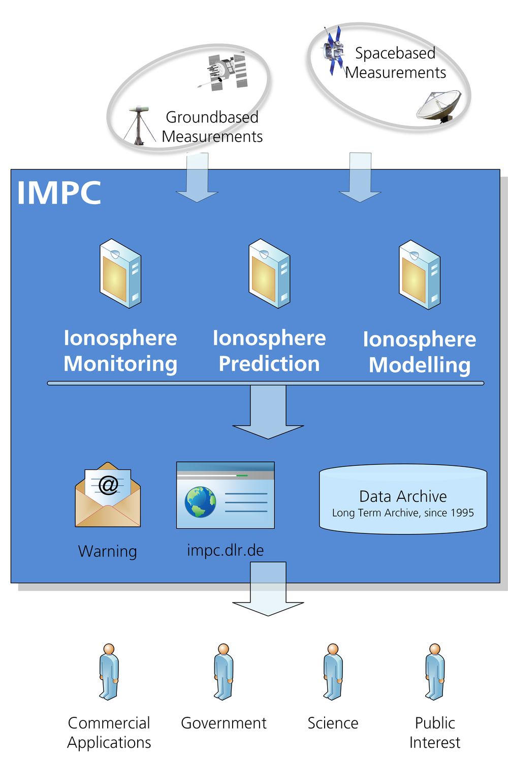 The performance of radio systems used for communications, navigation and remote sensing is affected by ionospheric variability. Ionospheric disturbances caused by space weather effects can degrade the accuracy, reliability and availability of Global Navigation Satellite Systems (GNSS). DLR's Ionosphere Monitoring and Prediction Centre (IMPC) provides a near real-time information and data service on the current state of the ionosphere, related forecasts and warnings. IMPC products are disseminated through the website impc.dlr.de.