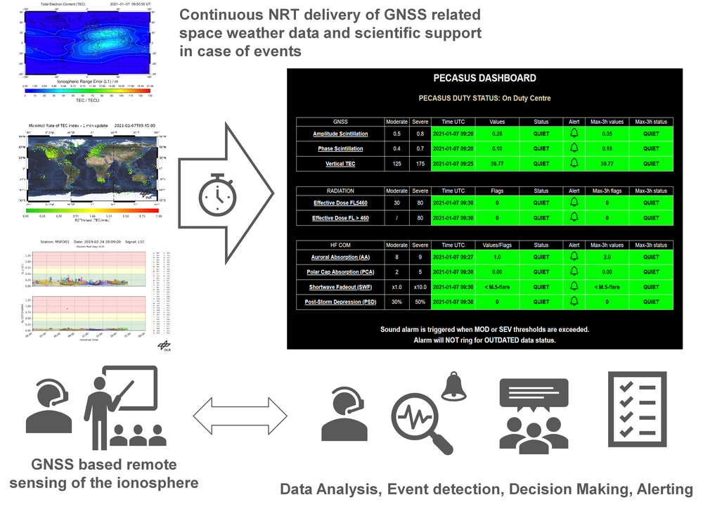 In the frame of PECASUS, the IMPC of DLR continuously provides tailored information on space weather conditions with potential impact on GNSS performance in aviation.