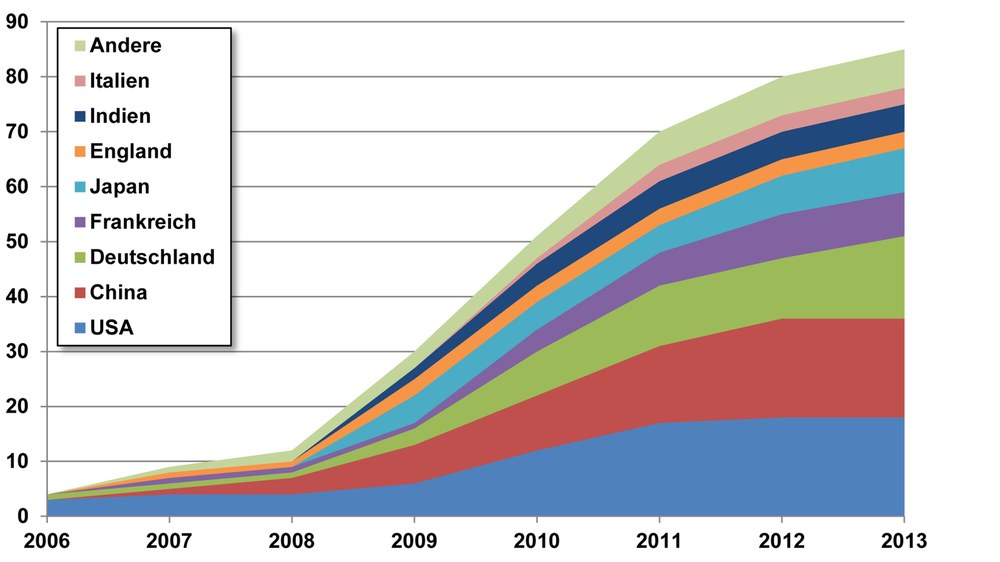 Within the study, the DLR scientists developed a database to record all electric passenger vehicles, which they analysed down to the component level – including series vehicles already in production, prototypes and research vehicles. They counted over 500 electric passenger vehicle concepts worldwide in the period from 2000 to 2013. At the moment, the automobile industry in Japan and the United States is pioneering the development of marketable vehicle models; they also produce the highest-selling models on the market. 210,000 vehicles with an external capacity to charge the battery (plug-in hybrids and battery-powered electric vehicles) were sold worldwide in 2013 – roughly half of them in the United States, which is currently the largest market.