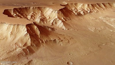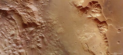 The latest images acquired by the High Resolution Stereo Camera (HRSC – High Resolution Stereo Camera), operated by the German Aerospace Center (Deutsches Zentrum für Luft- und Raumfahrt; DLR) on board the European Space Agency (ESA) Mars Express spacecraft, show a runout of the Aurorae Chaos region – an eastern continuation of the massive Valles Marineris graben system on Mars.