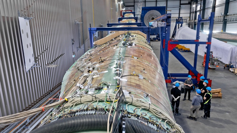 The newly-developed rotor blade has been put through its paces in a rigorous series of tests since December 2017, initially in an extreme load and operating test at the Fraunhofer IWES rotor test rig in Bremerhaven to discover whether fatigue or even damage occurred. Now complete, the scientists paid particular attention to whether the bending-torsion coupling worked smoothly in the DLR structural dynamics test, and whether the blade twists as predicted in the preliminary calculations. "Above all, the high sensor density on the blade and the specially adapted vibration exciters allow us to determine the structure and material deformation very precisely," says Govers.