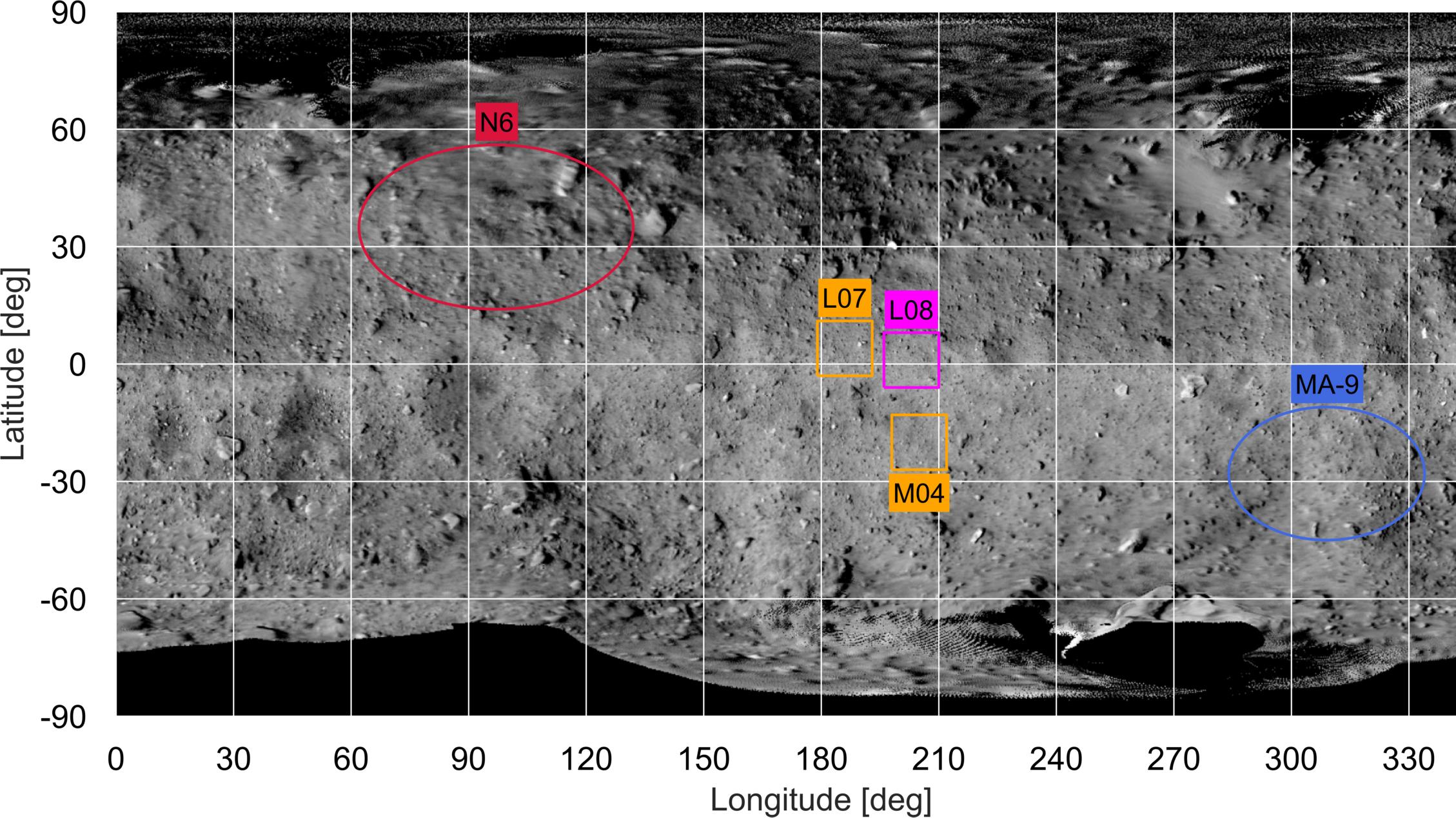 Not too hot and not too cold. Not too many boulders, nor too few. Easily accessible and scientifically exciting. Meeting the requirements that the Mobile Asteroid Surface Scout (MASCOT) team had for the landing site on the asteroid Ryugu was no easy task. "However, we have now decided on an almost perfect landing site," says Ralf Jaumann from the German Aerospace Center (Deutsches Zentrum für Luft- und Raumfahrt; DLR) Institute of Planetary Research, who is Principal Investigator of the MASCOT landing probe and responsible for the lander's MasCam camera experiment. DLR Project Manager Tra-Mi Ho is also satisfied with the selection of the landing site: "For the operation of our lander, the chosen landing site was among the favourites from the very start." In consultation with more than 100 international and national partners, the MASCOT landing site was selected from 10 potential candidates, and announced on 23 August 2018. MASCOT's landing is scheduled for 3 October 2018. The locations at which the Hayabusa2 probe is expected to take soil samples have also been designated, as have the sites where the three MINVERVA-II rovers will be placed on the asteroid's surface.