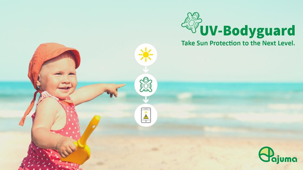 The Sun is important for life, but too much Sun exposure leads to sunburn and an increased risk of skin cancer. Annette Barth and Julian Meyer-Arnek have a young daughter who likes to play outside in the sunshine. This led the couple to start their own company, ajuma GmbH, and develop the UV-Bodyguard for her and all those who love the great outdoors, no matter their age. UV-Bodyguard is a wearable that is connected to an app on the user's smartphone and constantly measures levels of ultraviolet (UV) radiation. In this way, outdoor athletes and families can determine the most appropriate and healthy UV level for their skin type. In addition, they are informed about how much time they have left in the sunshine and are warned in time about the risk of sunburn – true to the motto 'Enjoy the Sun safely'.