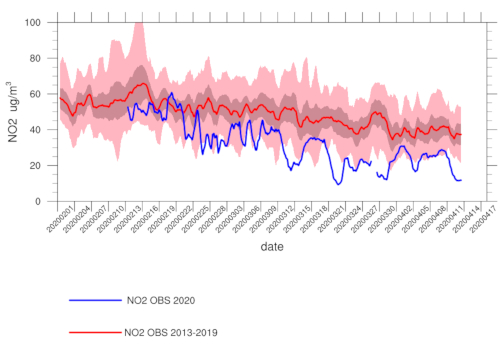 The scientists start their analyses using emission values of pollutants that are averaged over several years and represent the normal situation. This ensures that the model does not include the Coronavirus-conditioned measures. However, it takes into account the real weather conditions from hour to hour. This is followed by a comparison with this year's measured data. The modelled, normal situation is subtracted from the actual ground measurement values. Then, the lockdown in Lombardy reveals a real reduction of nitrogen dioxide concentration by approximately 20 micrograms per cubic metre. This is a 45 percent decrease.