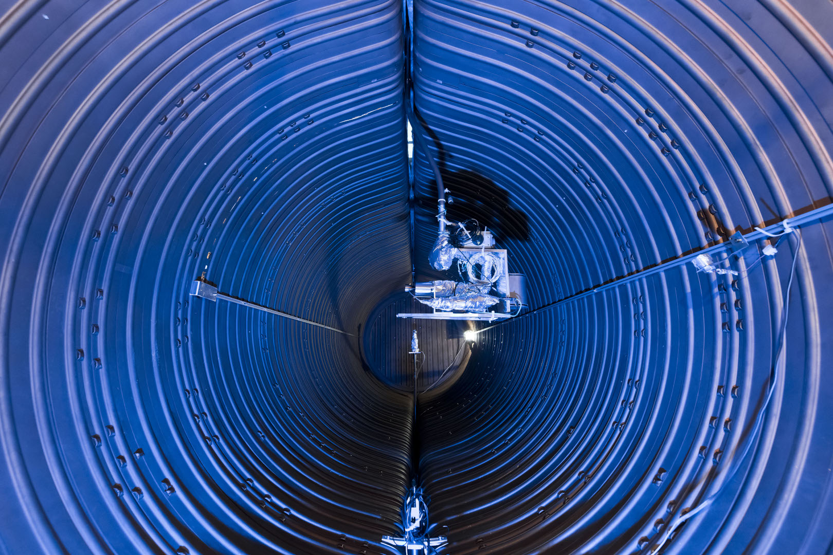The STG-CT is the only facility in the world with a pumping capacity so large that the propellant jets from the engines under investigation spread out as if they were in space.
