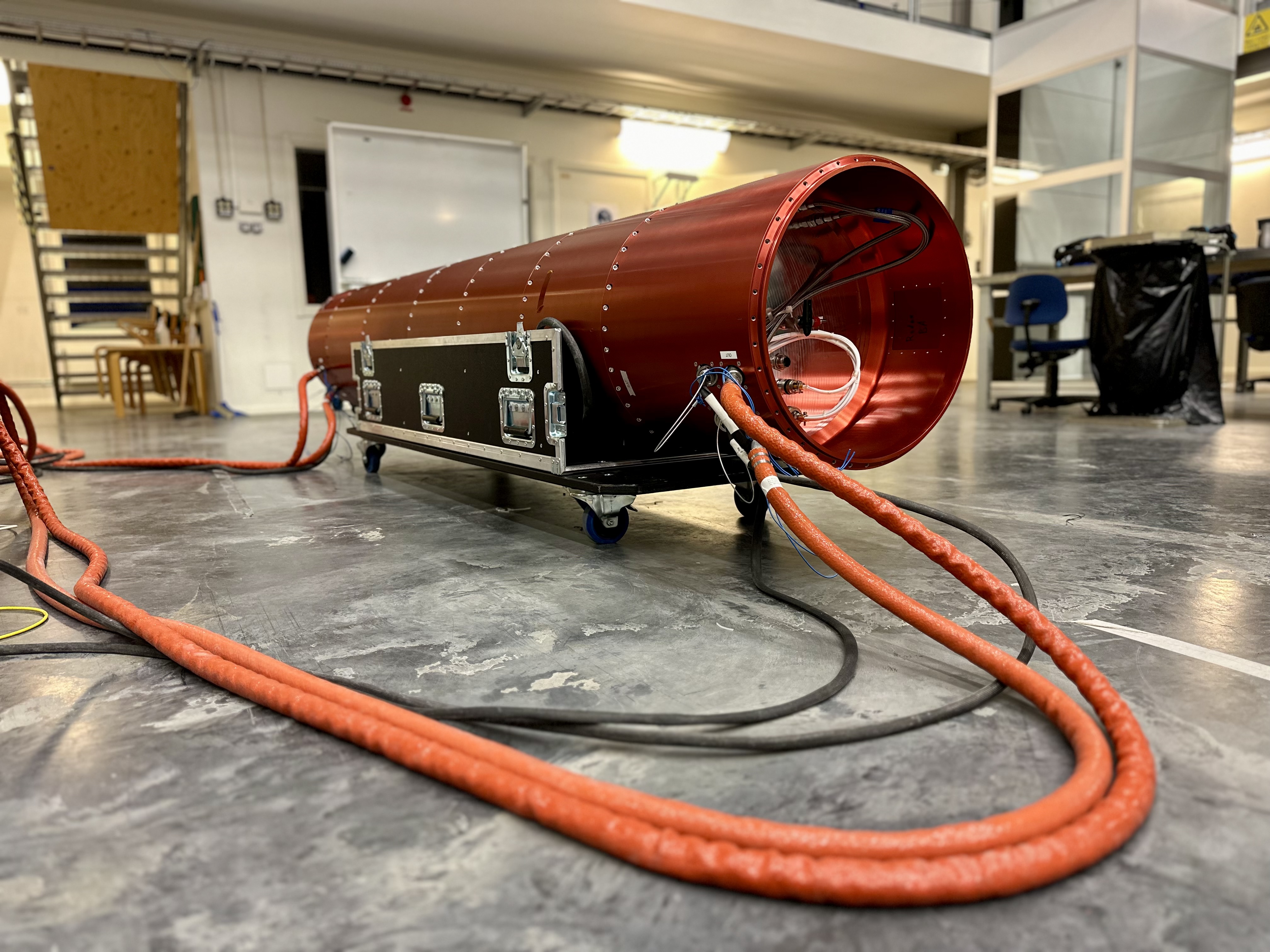 The passenger (or, payload) of the MAIUS-2 mission was extensively tested in the three week preparation period before launch. Testing took place in the 'payload hall' at the Kiruna space centre in northern Sweden.