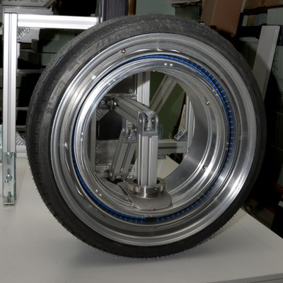 The rim weighs just over three kilograms. The external bearings and ability to control wheels individually are part of the patented running gear concept.