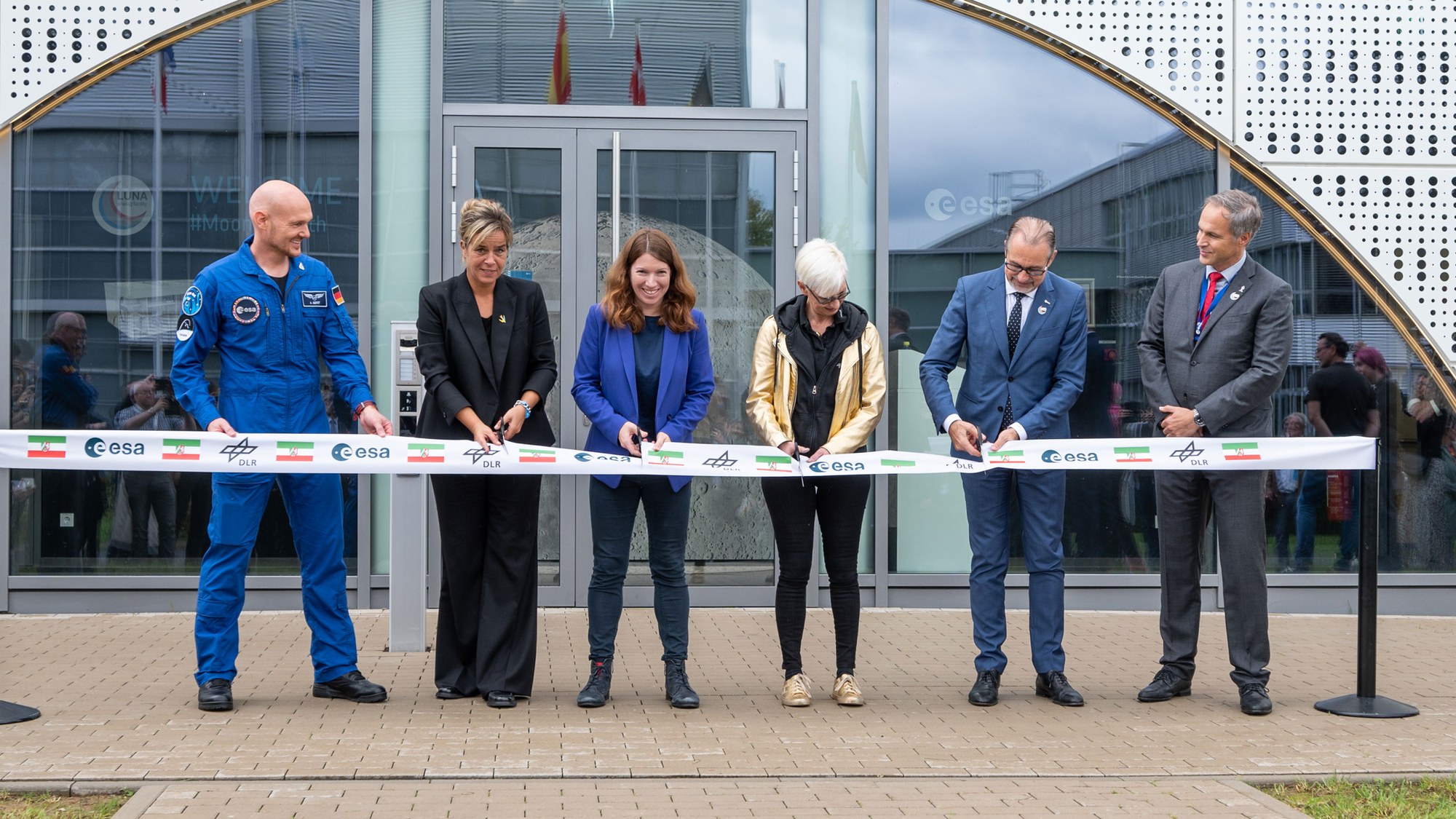 From left: ESA astronaut Alexander Gerst, Mona Neubaur (Minister for Economic Affairs, Industry, Climate Action and Energy of the State of North Rhine Westphalia), Anna Christmann MdB (Federal Government Coordinator of German Aerospace Policy), Anke Kaysser-Pyzalla (Chair of the DLR Executive Board), Josef Aschbacher (ESA Director General) and Daniel Neuenschwander (ESA Director of Human and Robotic Exploration)