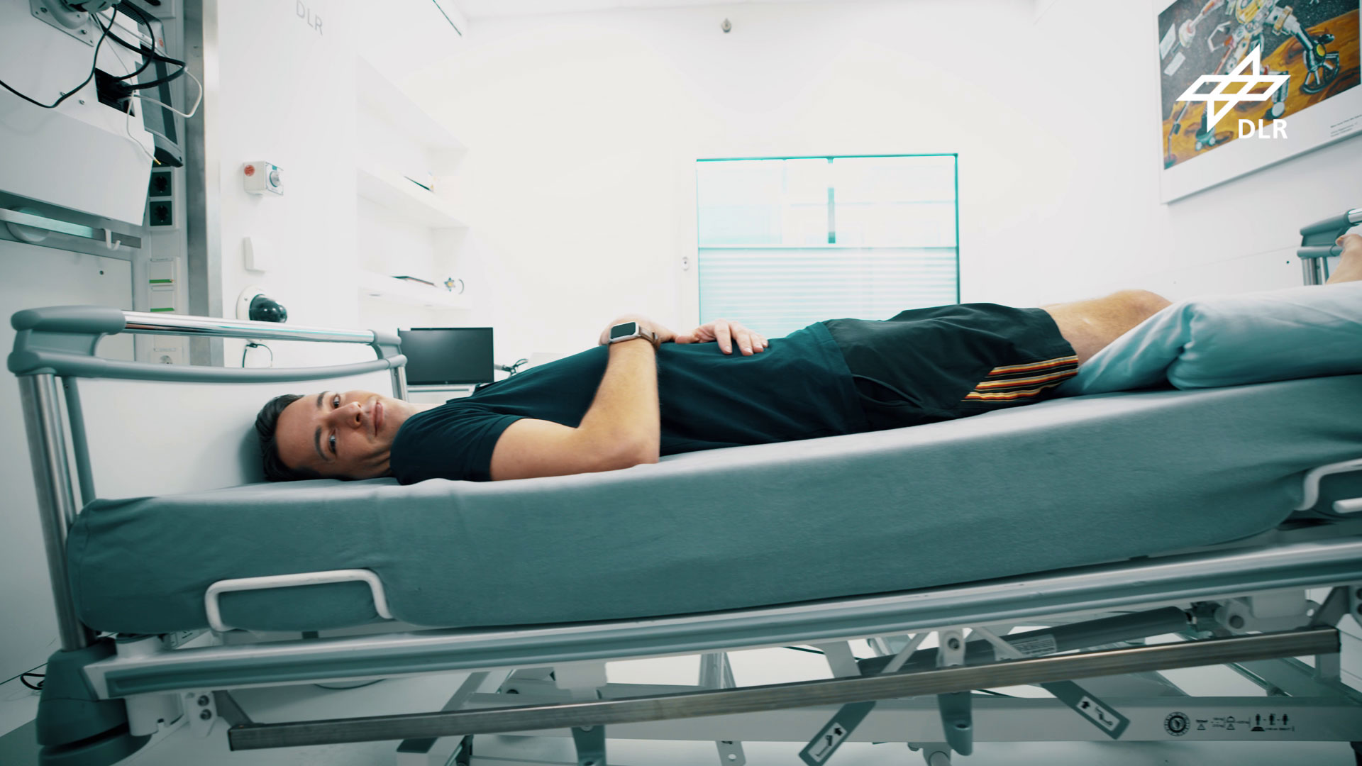 The bed is tilted down six degrees towards the head. This causes the fluids in the body to shift almost exactly as they do for astronauts in space. The SMC study at :envihab, the aerospace medicine laboratory in Cologne, will start in September 2024. It will primarily focus on investigating sensorimotor impairments resulting from prolonged space missions and potential countermeasures.