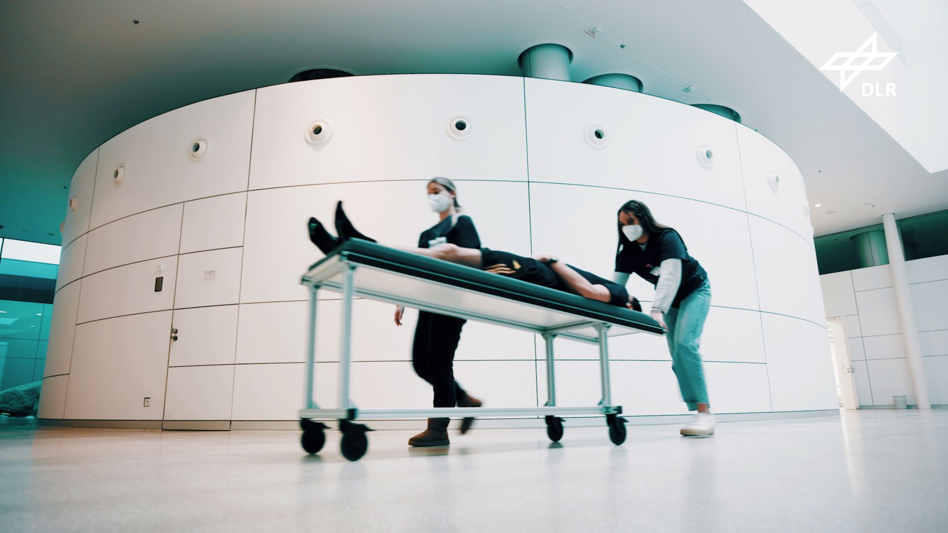 The participants remain stationed at the :envihab aerospace medicine research facility for a duration of 88 days. During this time, they are transported from their quarters to various examinations and experiments while positioned in a head-down position on stretchers. The dedicated SMC study research team provides continuous care and oversight for these ground-based astronauts throughout their stay.