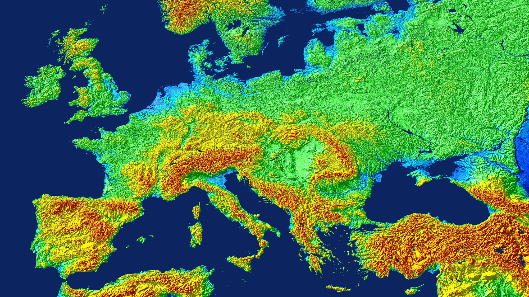 Visualisation of the TanDEM-X digital elevation model over central and southern Europe