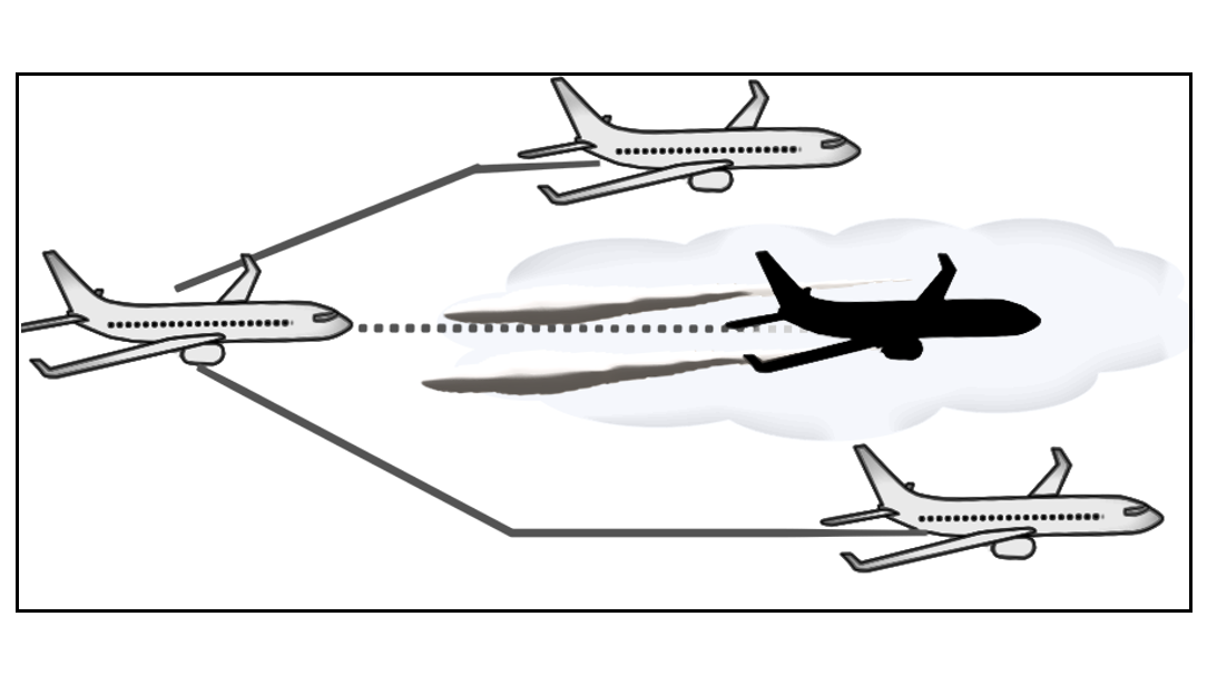 Avoiding contrail-forming regions (schematic illustration)