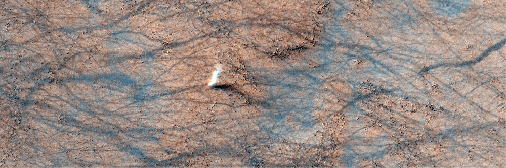 Wind movements and the swirling of dust often produce 'dust devils' – rotating columns of dust and air that move across the surface in the direction of the prevailing wind. While the wind itself is invisible in images, dust devils are clearly visible. Due to their forward motion, they serve as valuable indicators for research into otherwise invisible wind patterns. Dust devils also occur on Earth, but on Mars they are much larger and can reach heights of several kilometres.